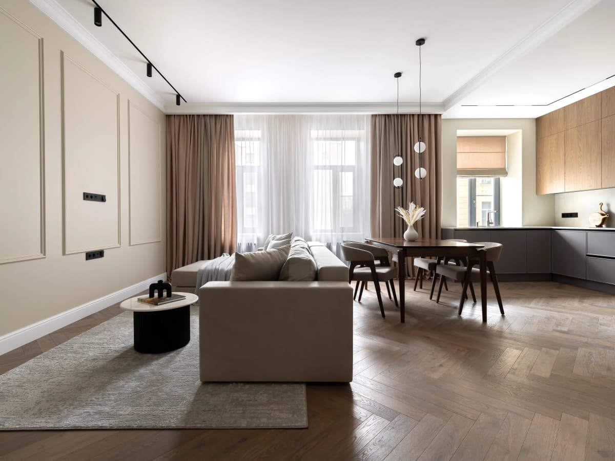 Сразу же скажем, что дизайн этой квартиры выполнялся под цели флиппинга. А именно капитального ремонта с целью перепродажи. То есть планировка должна была быть универсальной и функциональной, а дизайн простым, но в тоже время эффектным.