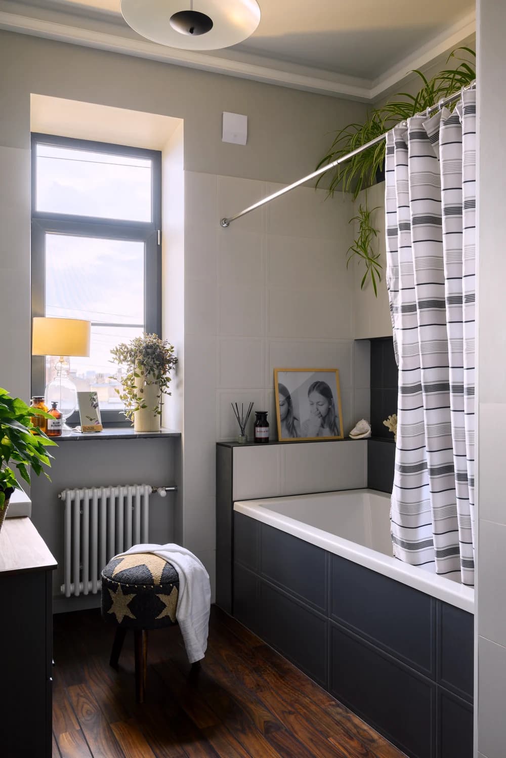 Мы старались уравновесить разные эпохи в интерьере. У Евгении было несколько старинных комодов, стульев и один большой шкаф, которые мы использовали при меблировке. Эти исторические детали создали в интерьере особую атмосферу и шарм: в нем не только царит дух старины, но и ощущаются современные тенденции в дизайне и оформлении пространства.